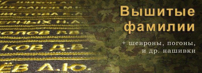 Наша специализация - военные нашивки. Мы предлагаем качественные индивидуальные нашивки с фамилией, а так же любые дополнительные знаки различия в виде нашивок и шевронов, необходимых для форменной и спец. одежды.